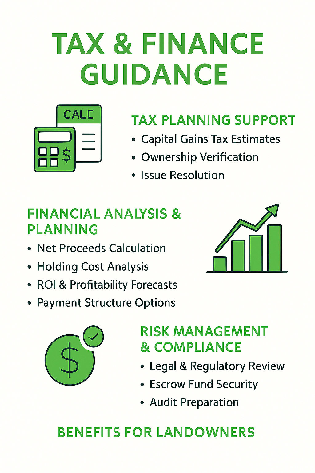 • Long-Term Planning: Align land sale proceeds with your overall goals